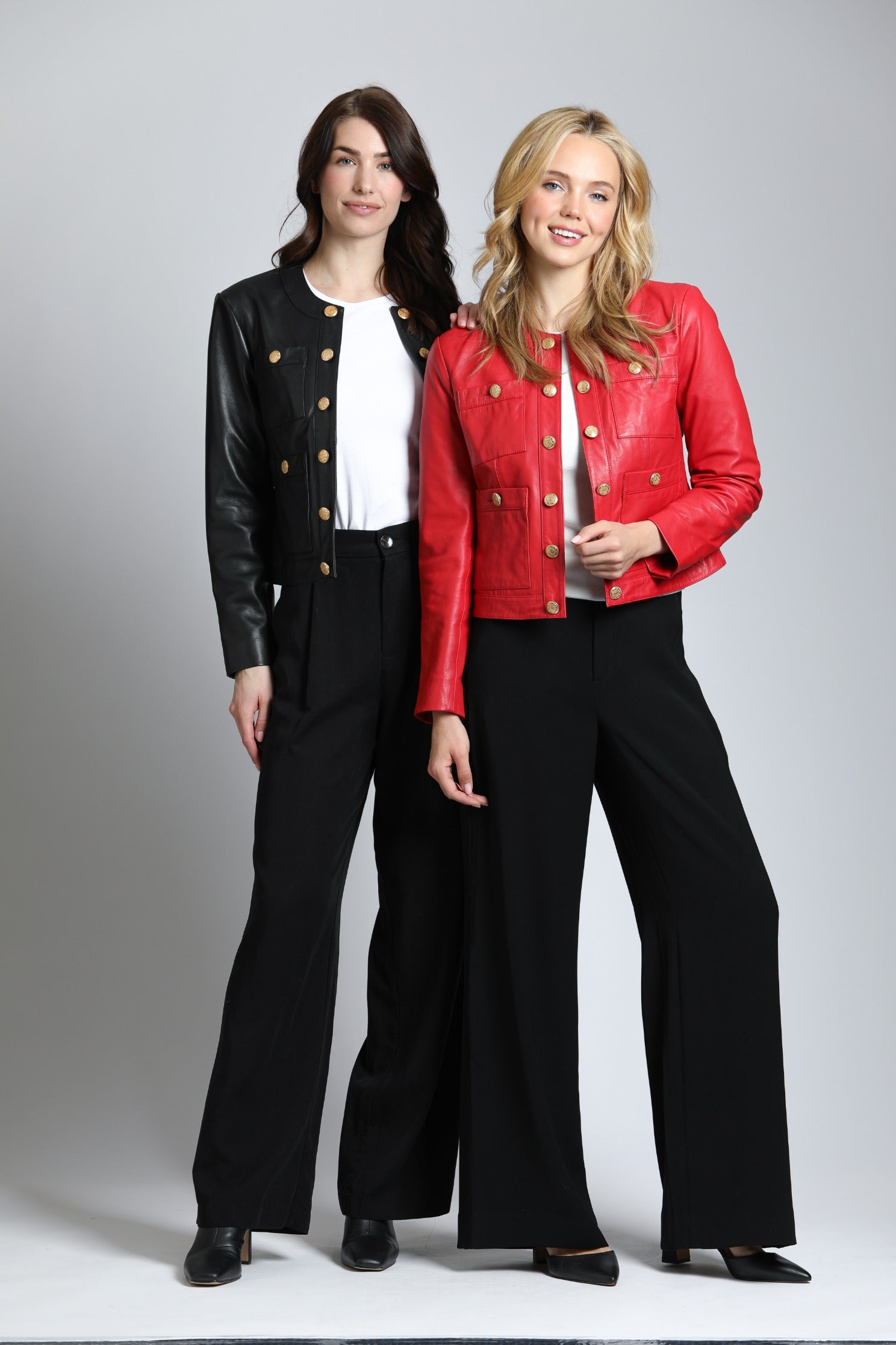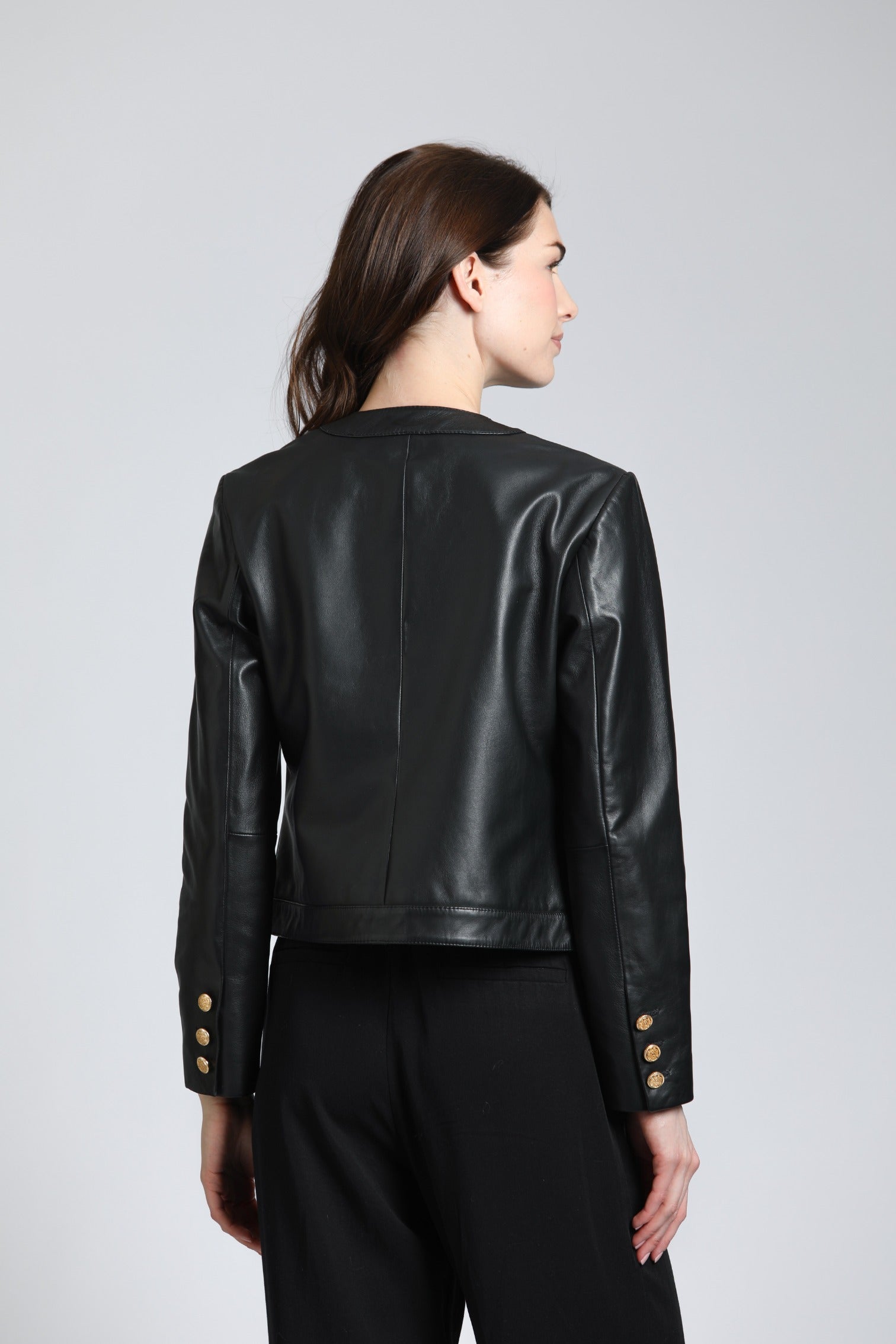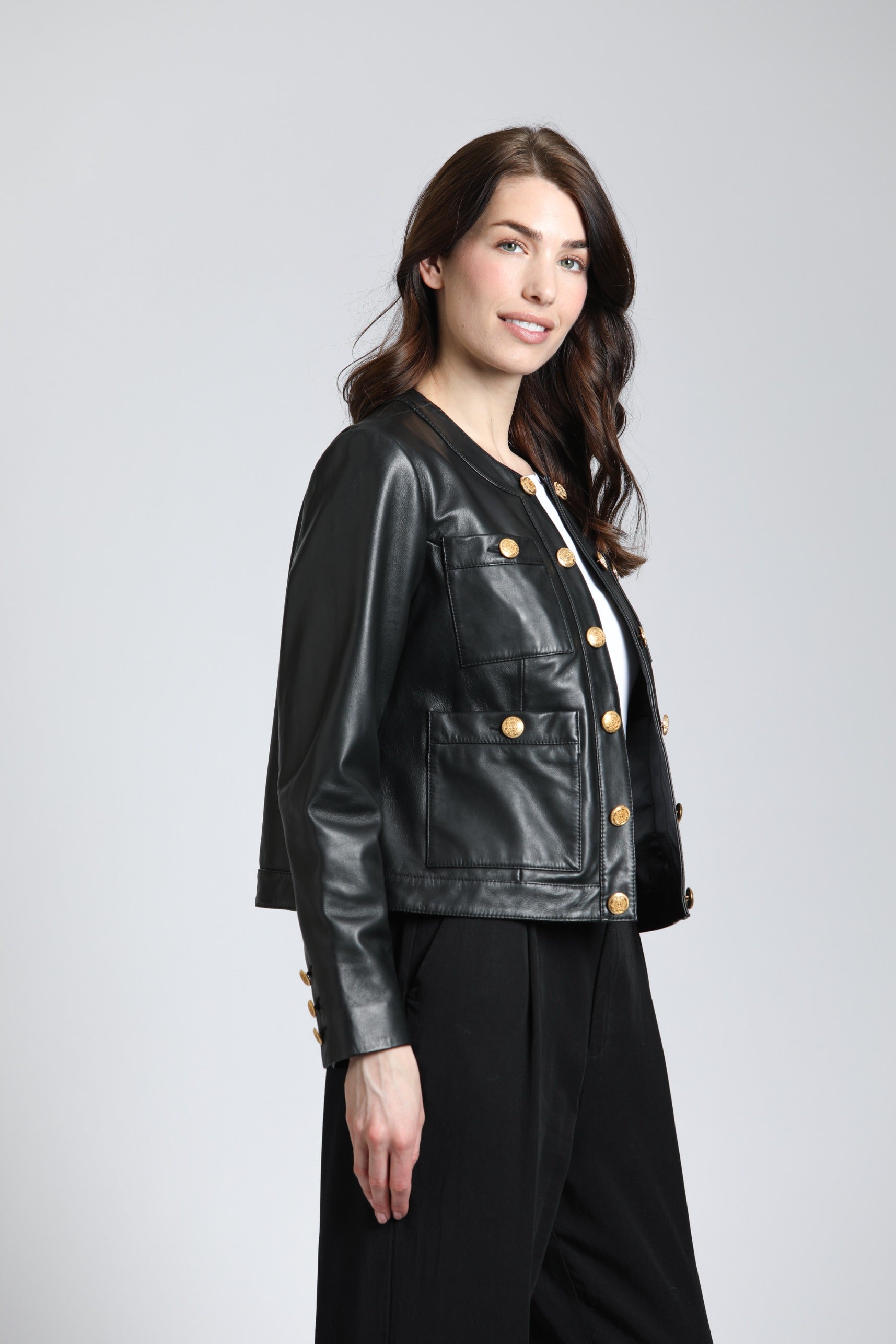 Sophisticated and timeless, the Lamb Leather Jacket with Gold Buttons blends luxe craftsmanship with refined elegance. Crafted from premium lamb leather, this jacket features a sleek, tailored fit accented by gleaming gold buttons for a touch of glamour. Whether dressed up or down, it’s the perfect statement piece to elevate any outfit with effortless style.